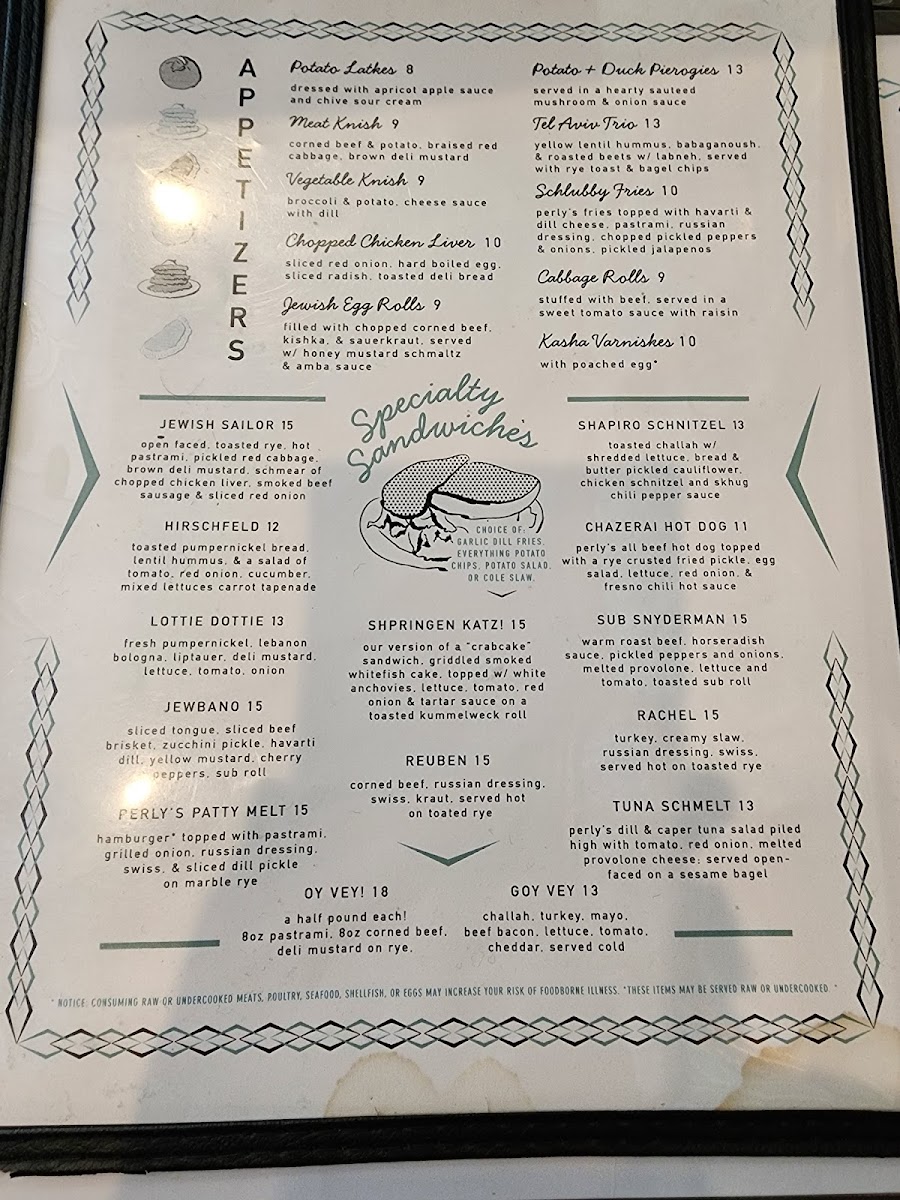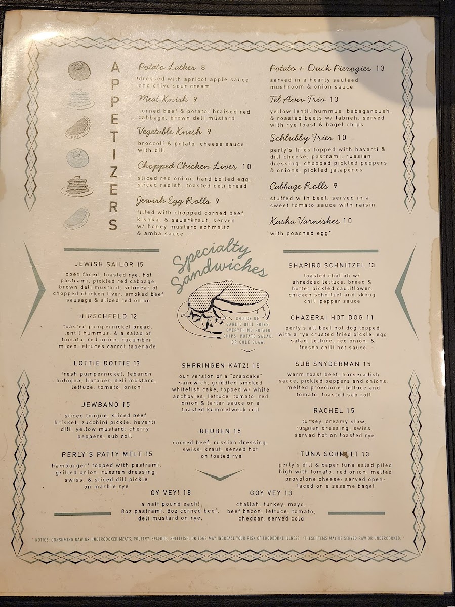 Perly's, nestled in the heart of Richmond, VA, is a celebrated culinary gem renowned for its imaginative take on Jewish-style deli cuisine. This inviting establishment excels in comfort food, offering standout dishes such as the Oye Sandwich and the iconic Jewbano, both praised for their generous portions and bold flavors. Guests rave about the warm ambiance and attentive service, ensuring a delightful dining experience. With a diverse selection of appetizers like potato latkes and pierogies, along with an inviting breakfast menu, Perly's promises an unforgettable journey through the rich flavors of traditional deli fare. Don’t miss out on this beloved local haunt!
