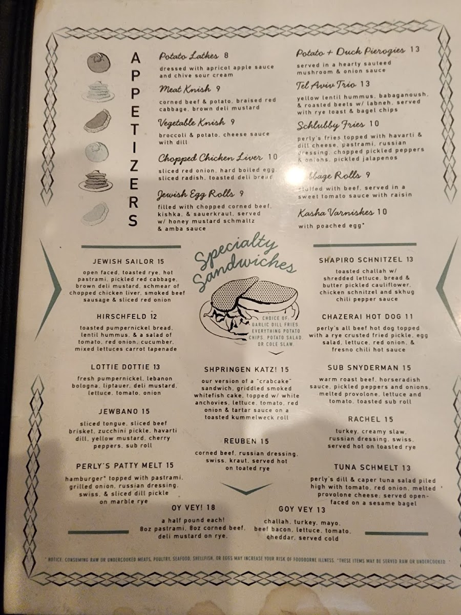 Perly's stands out not only for its ambiance but also for its flavorful menu. You can indulge in delicious appetizers like the Jewish Egg Rolls, filled with corned beef and sauerkraut, or try the savory Cabbage Rolls drenched in a sweet tomato sauce. Don't miss out on the Meat Knish, a delightful blend of corned beef and potato that provides a nostalgic taste of Jewish heritage.
